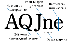 - Поскольку шрифт Century Schoolbook очень поохож на Times, имеет смысл показать сравнительную картинку Century (слева) и Times (справа). Сразу бросаестя в глаза, то что у шрифта Таймс засечки тоньше и каплевидные окончания более вытянуты.